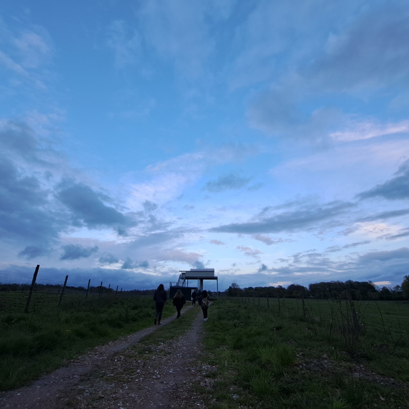 Mit etwas Grundwissen ausgestattet, ging es per Treppe zum großen Teleskop, wo nun auch ein paar Wolkenlücken den wunderschönen Blick auf den Mond ermöglichten. Insgesamt waren alle begeistert von dem Vortrag, dem Teleskop, den ganzen neuen Erkenntnissen und dem schönen gemeinsamen Moment mitten in der Natur in Hille beim Einbrechen der Nacht.