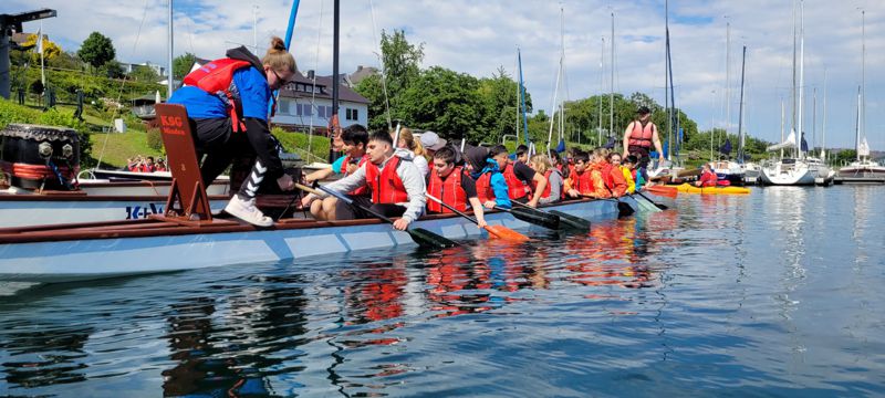 Angekommen am See genießen alle die tolle Aussicht auf das Panorama, was sich jedem Besucher bietet. Von weitem hört man schon die Trommeln und lautstarke Kommandos. Am Ufer geschäftiges Treiben. Das engagierte Team der KSG (Kanu-Sport-Gemeinschaft) mit Achim vorne weg bespricht ruhig aber bestimmt, wer wo welche Schwimmweste, welches Paddel, welchem Boot zugeteilt wird. Auf dem Plan stehen Drachenboot, Kanadier und Kajak – aber das bedeutet vor allem neben dem Sport auch Abenteuer und Teamgeist. Immer zwei Schüler*innengruppen sind auf dem Wasser, manche auch mal im…