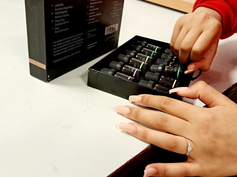 Versucht haben das jetzt die Schüler:innen des Projektkurses »Design Yourself!« in der Jahrgangsstufe 9 an der Kurt-Tucholsky-Gesamtschule. Eine große Anzahl an flüssigen Aromen, Pipetten, geruchsneutrales Jojobaöl und kleine Roll-On-Fläschchen sowie ein gutes Näschen waren gefragt.