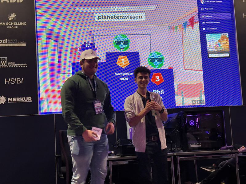 Zum Abschluss der Convention fand ein unterhaltsames MINT-Quiz, moderiert von Bieso, statt. Dabei bewiesen unsere Schüler:innen nicht nur ihr Fachwissen, sondern auch schnelles Denken. Das Ergebnis konnte sich sehen lassen: Unsere Schüler:innen belegten den ersten, dritten und vierten Platz – ein toller Erfolg!