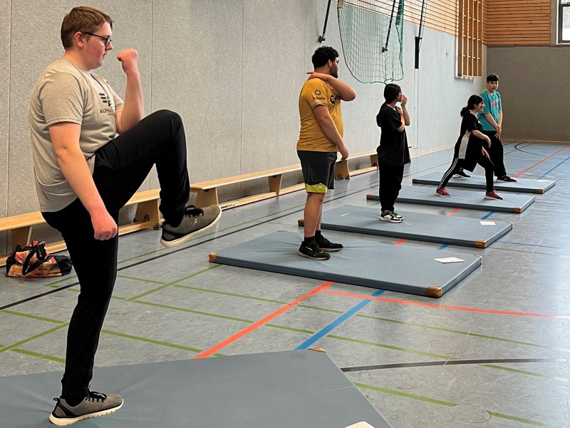 An mehreren Tagen fand an der Kurt-Tucholsky-Gesamtschule ein Projekt im Rahmen der »Gesunden Schulen im Mühlenkreis«. Frau Bramkamp leitete das Projekt »Fitness und Denkleistung« in den WP-Hauswirtschaftskursen von Frau Imke und Frau Schubert. Zu Beginn wiederholten die Schüler:innen die Ernährungspyramide mit dem Schwerpunkt auf Obst und Gemüse. Sie klärten, was die Empfehlung 5 am Tag bedeutet. Dann wurde es sportlich und die Schüler:innen bewegten sich.