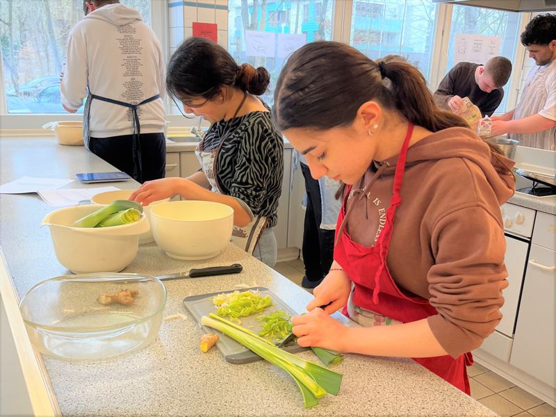 Anschließend bereiteten die Schüler:innen eine Kartoffelsuppe, Gemüseauflauf und einige weitere schmackhafte Gerichte zu. Zum Abschluss des Tages wurden diese gemeinsam gegessen. Ein toller Projekttag mit vielen praktischen Eindrücken!