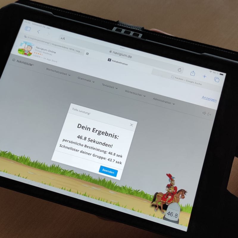 Drei Lateingruppen nahmen an dem diesjährigen Wettbewerb der digitalen Lernplattform Navigium teil. Die Lateinschülerinnen und -schüler des neunten Jahrgangs, der Einführungsphase und Qualifikationsphase bildeten zwei Gruppen, die zwar nicht die Top 100 erreichten, deren Ergebnisse sich aber dennoch sehen ließen. Denn insgesamt übten die Teams fast 6.500 Vokabeln innerhalb nur einer Woche. Team Servi servaeque (Jahrgang 9) belegte Platz 157, während die Latein-Crew (EF und Q1) Platz 185 erreichte. Beide Teams traten unter der Leitung von Frau Eickhoff an. Um Punkte zu sammeln, mussten Vokabeln der passenden Bedeutung oder dem passenden Bild zugeordnet werden. Dabei waren sowohl Schnelligkeit als auch Ausdauer gefragt, denn die Vokabeln mussten größtenteils in der Freizeit oder sogar auf Ski-Fahrt, bzw. während des Praktikums gelernt werden.