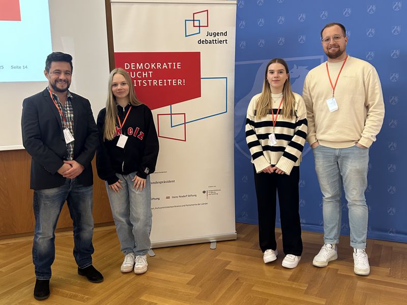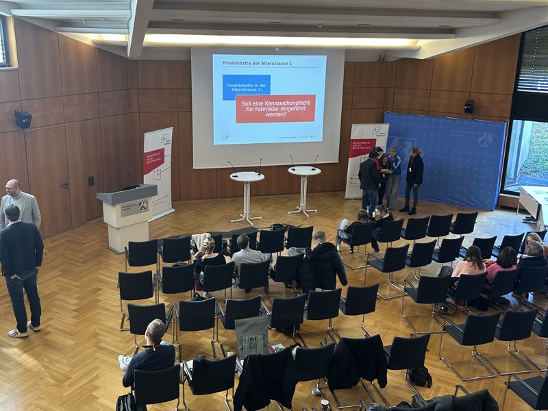 Nach der Ankunft wurden alle Teilnehmenden herzlich empfangen und erhielten eine kurze Einführung in den Ablauf des Wettbewerbs. Anschließend blieb Zeit, um sich mit den anderen Debattierenden auszutauschen und Argumente sowie Gegenargumente vorzubereiten. Die Themen der Qualifikationsrunden lauteten »Soll ehrenamtlich Engagierten ein staatlicher Zuschuss zum Führerschein gewährt werden?« und »Sollen extreme Parteien von Diskussionsrunden ausgeschlossen werden?«.Dann begann die erste Debatte, die in einem ähnlichen Format wie im Schulunterricht ablief. Nach einer kurzen Pause folgte die zweite Runde, in der die Teilnehmenden erneut ihr Können unter Beweis stellten. Die Konkurrenz war groß, denn es traten Schülerinnen und Schüler aus verschiedenen Schulen der Region an.