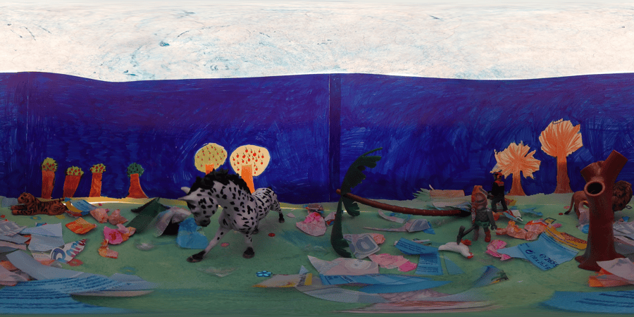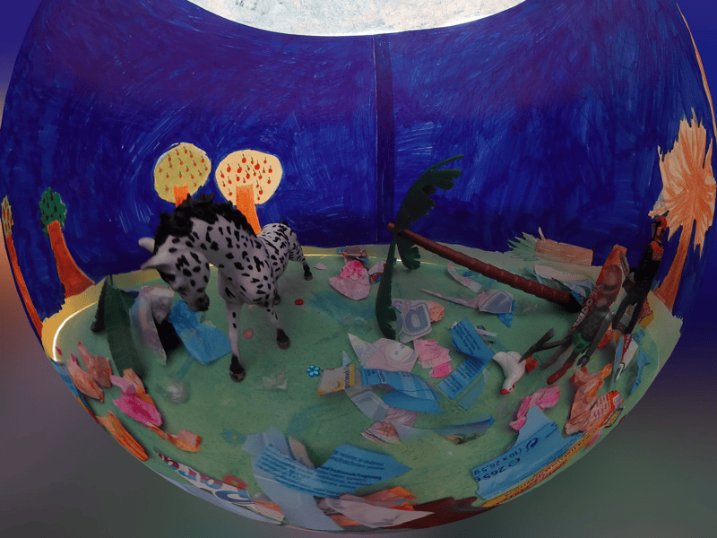 Die Schülerinnen und Schüler gestalteten eine künstlerische Umgebung durch das Bemalen eines Kartonringes. Außerdem durften sie ihre Spielfiguren von zuhause mitbringen und entwickelten so ihre ganz eigenen Welten, mit denen sie auf ihre Themen aufmerksam machen wollten.