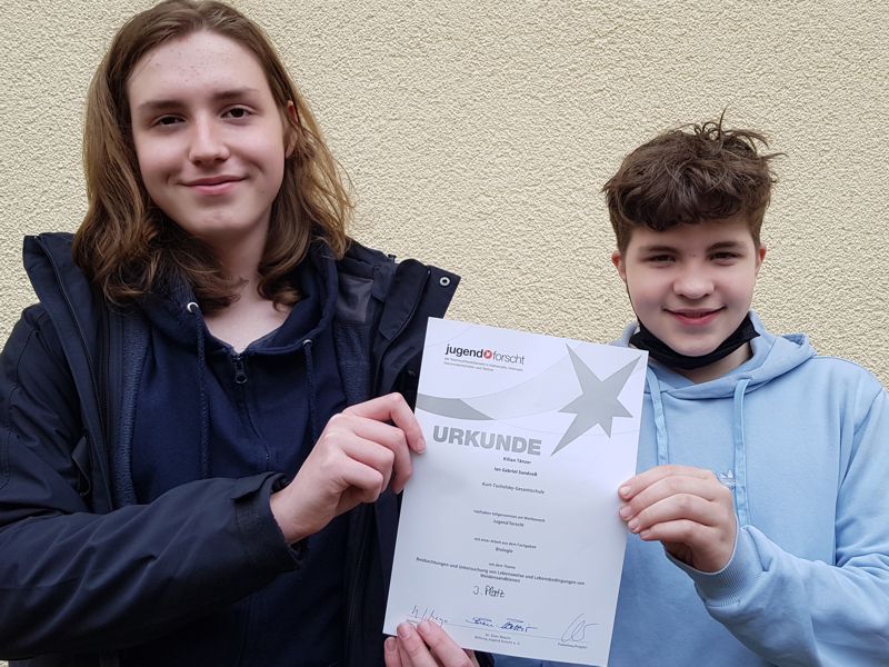 dass Schüler der KTG sich am Wettbewerb ‚Jugend forscht‘ beteiligten. Aber in diesem Jahr war es so weit, – selbst Corona konnte eine erfolgreiche Teilnahme nicht verhindern. Und so belegten Ian Sandvoss und Kilian Tänzer aus dem Jahrgang 10 den 3. Platz in der Kategorie Biologie. Thema war die Sandbienenkolonie am Gevattersee. Was da an Aspekten bearbeitet wurde, würde für mehrere Bewerbungen reichen, sagte die Jury, und so war unmöglich, alles in dem begrenzten Wettbewerbsrahmen angemessen unterzubringen. Bei Jugend-forscht konkurriert man ab dem Alter von 16 Jahren mit Abiturienten, – da ist ein dritter Platz super. Beide Schüler sind zu Recht stolz auf ihre Leistung, und nun wissen nun, wie bei dem Wettbewerb »der Hase läuft« bzw. »die Biene brummt«. Kilian will sich im kommenden Jahr mit dem Teilaspekt der Parasiten an Sandbienen wieder am Wettbewerb beteiligen, ein etwas gruseliges Thema, aber sehr spannend – wir wünschen ihm viel Erfolg!